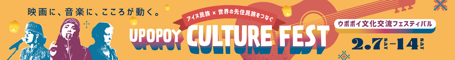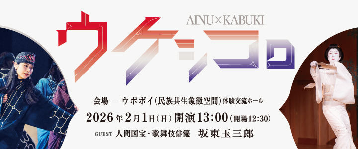 11月3日(木・文化の日)は無料開放日です。詳しくはこちら 「博物館入館整理券」取得※ウポポイ入場にあたり予約は必要ありません。 ※学校利用などにより混雑することがございますので、博物館入館整理券の事前予約を推奨しております。 ウポポイ周辺の天気 今日 | 1/5 月 曇りがち -4°C ウポポイを堪能するおすすめコース はじめてのウポポイコース Upopoy Visitor guide 詳細はこちら ファミリーコース Upopoy Visitor guide 詳細はこちら アイヌ文化深掘りコース Upopoy Visitor guide 詳細はこちら アイヌの世界探訪コース Upopoy Visitor guide 詳細はこちら 今日 | 1/5 月 本日は閉園日です 新着ウポポイトピックス その他 北海道主催「令和7年度アイヌ工芸品担い手育成事業」成果発表 2026年1月5日 プログラム 2025年「マタパ」のお知らせ 2025年10月31日 博物館 ホリデーイベントのご案内(2026年1月分) 2025年12月22日 博物館 第1回国際先住民族博物館シンポジウム『先住民族×博物館』- 協働、対話、更新- 2025年12月22日 プログラム 芸能上演特別プログラム(2026年1月分) 2025年12月21日 プログラム 各地域の保存会によるアイヌ古式舞踊披露(2026年1月分) 2025年12月21日 イベント ウケㇱコㇿ~紡がれるアイヌ伝統芸能と歌舞伎~【観覧受付中】 2025年12月19日 イベント UPOPOY CULTURE FEST ウポポイ文化交流フェスティバル(2026年2月7日~14日) 2025年12月18日 ウポポイトピックス一覧 イベントカレンダー(随時更新) 2026年 1月日月火水木金土28293031123トゥレッポんのおさんぽ45678910トゥレッポんのおさんぽ冬休みKIDS DAYギャラリートーク11121314151617トゥレッポんのおさんぽ古式舞踊冬休みKIDS DAY芸能上演特別プログラムトゥレッポんのおさんぽホリデーイベントホリデーイベントギャラリートーク18192021222324古式舞踊トゥレッポんのおさんぽトゥレッポんのおさんぽバックヤードツアーホリデーイベント25262728293031トゥレッポんのおさんぽトゥレッポんのおさんぽホリデーイベント講演会 2026年 2月日月火水木金土1234567トゥレッポんのおさんぽ文化交流フェスティバルウケㇱコㇿ~紡がれるアイヌ伝統芸能と歌舞伎~国際シンポジウムギャラリートーク891011121314文化交流フェスティバル国際シンポジウムMusic Festival 2026ギャラリートーク1516171819202122232425262728 9:00〜18:009:00〜20:009:00〜17:00閉園日未定 年間カレンダーはこちら ウポポイとは プログラム一覧 グルメ ショッピング アイヌ民族博物館 慰霊施設 ウポポイ(民族共生象徴空間ウアイヌコㇿ コタン)園内MAP カンカン いざないの回廊 ウウェランカラㇷ゚ ミンタㇻ 歓迎の広場 ホㇱキアン チセ エントランス棟 アヌココㇿ アイヌ イコロマケンル 国立アイヌ民族博物館 イカㇻ ウシ 工房 テエタ カネ アン コタン 伝統的コタン ヤイハノッカㇻ チセ 体験学習館 ウエカリ チセ 体験交流ホール チキサニ ミンタㇻ チキサニ広場 ポロト湖 ウポポイをバーチャル体験! 多彩なアイヌ文化体験プログラム開催中 プログラム タイムテーブル/全施設一覧 シアタープログラム 「アイヌの歴史と文化」@国立アイヌ民族博物館 実食体験プログラム「イペアン ロ!」@体験学習館 イカㇻカㇻアン ロ@工房 シアタープログラム 「世界が注目したアイヌの技」@国立アイヌ民族博物館 イヌイェアン ロ@工房 ピㇼカ!ビンゴ アキ ロ@伝統的コタン プログラム一覧 お知らせ 一覧 月刊ウポポイ 1月号【No.30】 2026年1月5日 ウポポイ開業5周年記念 多文化共生ウィーク特別企画「ウケㇱコㇿ~紡がれるアイヌ伝統芸能と歌舞伎~」開催 2025年12月19日 映画に、音楽に、こころが動く。「ウポポイ文化交流フェスティバル」 2025年12月18日 ウポポイにおける新型コロナウィルス感染者の発生について 広告欄 ウポポイウェブサイトバナー広告募集についてはこちら バナー広告募集中 Facebook Instagram Youtube