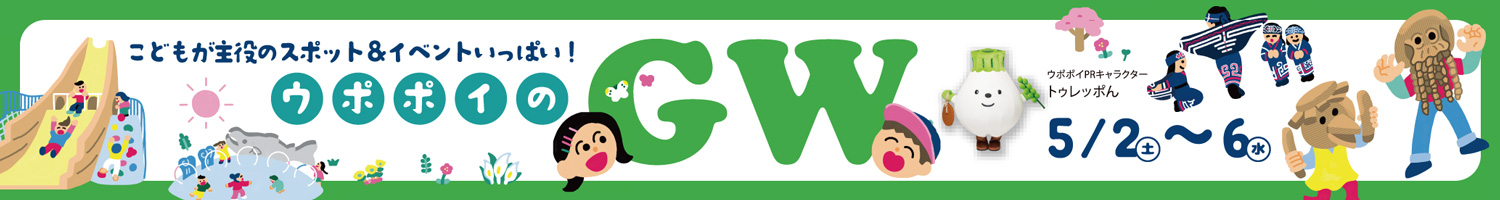 重要なお知らせ 2026年2月15日 システム入替作業に伴う事前予約取り扱いの変更について【2/15~3/31】... 11月3日(木・文化の日)は無料開放日です。詳しくはこちら 「博物館入館整理券」取得※ウポポイ入場にあたり予約は必要ありません。 ※学校利用などにより混雑することがございますので、博物館入館整理券の事前予約を推奨しております。 ウポポイ周辺の天気 今日 | 3/28 土 厚い雲 3°C ウポポイを堪能するおすすめコース はじめてのウポポイコース Upopoy Visitor guide 詳細はこちら ファミリーコース Upopoy Visitor guide 詳細はこちら アイヌ文化深掘りコース Upopoy Visitor guide 詳細はこちら アイヌの世界探訪コース Upopoy Visitor guide 詳細はこちら 今日 | 3/28 土 開園時間 9:00〜17:00 園内バス(無料)»詳細はこちら 9:30〜16:30 新着ウポポイトピックス イベント ウポポイのGW(5月2日~6日) 2026年3月27日 プログラム イタㇰ フナㇻパ(ことばさがし) 2026年3月26日 博物館 【受講申込み受付中】2026(令和8)年度 連続講座「ウポポイ大学」 2026年3月17日 その他 レストランとフードコートが4月にリニューアル 2026年3月10日 イベント 展示イベント「森を生かす、アイヌ文化継承のいまVol.2~北海道平取町~」 2026年3月10日 博物館 【関連イベント】第10回テーマ展示「ケレ ヤン、ヌカㇻ ヤン、ヌ ヤン さわる、みる、きく 国立アイヌ民族博物館 2」 2026年2月27日 「ウポポイ・白老・登別フォトコンテスト2025」受賞結果発表 2026年2月26日 博物館 ホリデーイベントのご案内(2026年2月分) 2026年2月22日 ウポポイトピックス一覧 イベントカレンダー(随時更新) 2026年 3月日月火水木金土1234567891011121314森を生かす、アイヌ文化継承のいまトゥレッポんのおさんぽ15161718192021森を生かす、アイヌ文化継承のいまトゥレッポんのおさんぽギャラリートークトゥレッポんのおさんぽギャラリートーク22232425262728森を生かす、アイヌ文化継承のいまトゥレッポんのおさんぽトゥレッポんのおさんぽ2930311234森を生かす、アイヌ文化継承のいまトゥレッポんのおさんぽトゥレッポんのおさんぽギャラリートーク 2026年 4月日月火水木金土2930311234森を生かす、アイヌ文化継承のいまトゥレッポんのおさんぽトゥレッポんのおさんぽギャラリートーク567891011トゥレッポんのおさんぽトゥレッポんのおさんぽ12131415161718トゥレッポんのおさんぽトゥレッポんのおさんぽ19202122232425トゥレッポんのおさんぽトゥレッポんのおさんぽ262728293012トゥレッポんのおさんぽトゥレッポんのおさんぽこどもの遊びウポポイ大学ウポポイのGW 9:00〜18:009:00〜20:009:00〜17:00閉園日未定 年間カレンダーはこちら ウポポイとは プログラム一覧 グルメ ショッピング アイヌ民族博物館 慰霊施設 ウポポイ(民族共生象徴空間ウアイヌコㇿ コタン)園内MAP カンカン いざないの回廊 ウウェランカラㇷ゚ ミンタㇻ 歓迎の広場 ホㇱキアン チセ エントランス棟 アヌココㇿ アイヌ イコロマケンル 国立アイヌ民族博物館 イカㇻ ウシ 工房 テエタ カネ アン コタン 伝統的コタン ヤイハノッカㇻ チセ 体験学習館 ウエカリ チセ 体験交流ホール チキサニ ミンタㇻ チキサニ広場 ポロト湖 ウポポイをバーチャル体験! 多彩なアイヌ文化体験プログラム開催中 プログラム タイムテーブル/全施設一覧 イタㇰ トマリ@多目的ホール ポン劇場@伝統的コタン イメル(~4/24)@体験交流ホール シアタープログラム 「普段着のアイヌ」@国立アイヌ民族博物館 ネウサㇻアン ロ@伝統的コタン アㇰシノッ@弓矢体験館 プログラム一覧 お知らせ 一覧 ウポポイのゴールデンウィークはこどもが主役! 2026年3月27日 WEB購入限定のウポポイ入場券200円割引 ~4月1日以降も継続~ 2026年3月24日 令和8年度からアイヌ文化を体系的に学ぶ座学プログラム「ウポポイ大学」を新規開講 2026年3月17日 ウポポイにおける新型コロナウィルス感染者の発生について 広告欄 ウポポイウェブサイトバナー広告募集についてはこちら バナー広告募集中 Facebook Instagram Youtube