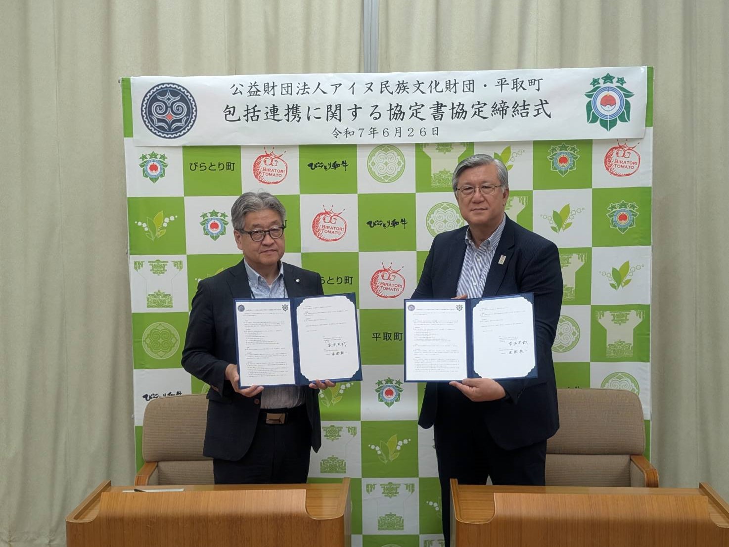 公益財団法人アイヌ民族文化財団(札幌市中央区、常本照樹理事長)と北海道平取町(遠藤桂一町長)はアイヌ文化の振興及びアイヌの伝統等に関する知識の普及、啓発並びに地域の課題に適切に対応し、地域社会の発展に寄与することを目的として包括連携協定を締結しました。