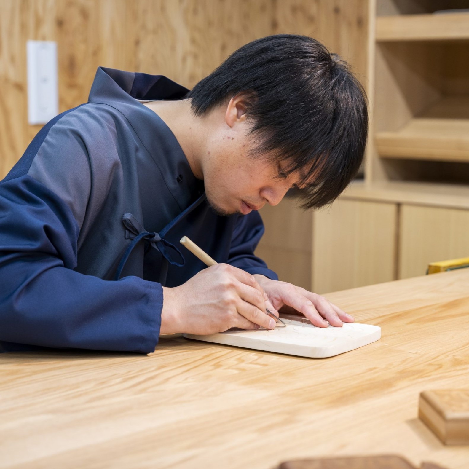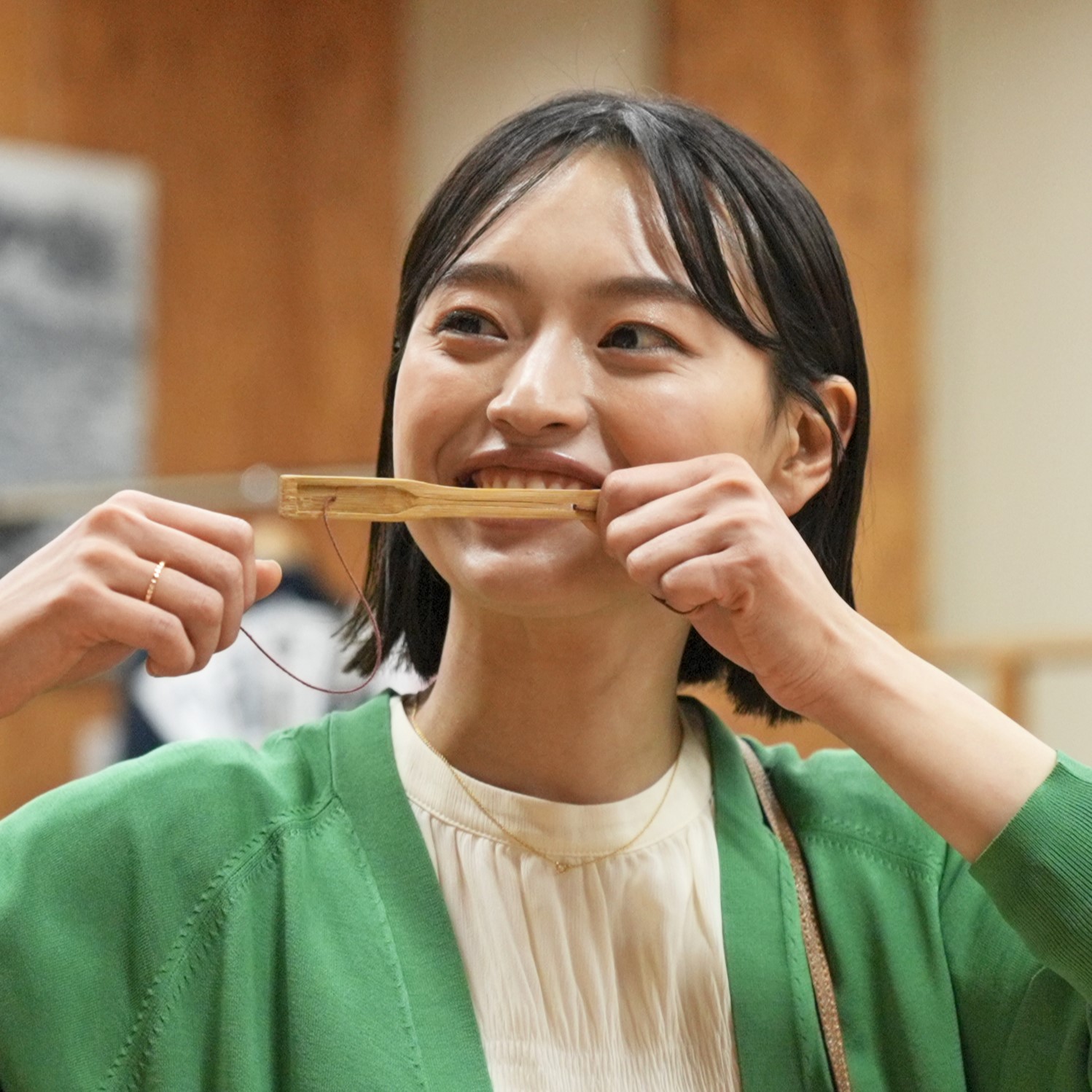 刺しゅうやシカ笛などの製作体験ができます。キーホルダー製作に使用するトゥムㇱ(木鈴)はウポポイスタッフの手作り。製作体験以外に、工芸品の展示、ウポポイスタッフによる刺しゅうや木彫の実演もあり間近でアイヌ工芸の技法を見られるほか、衣装の試着をして記念撮影もできます。