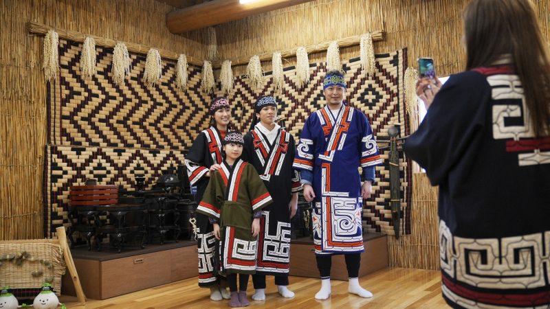 在傳統的kotan內備有小孩到成人的愛努民族服飾,供遊客試穿的體驗。
