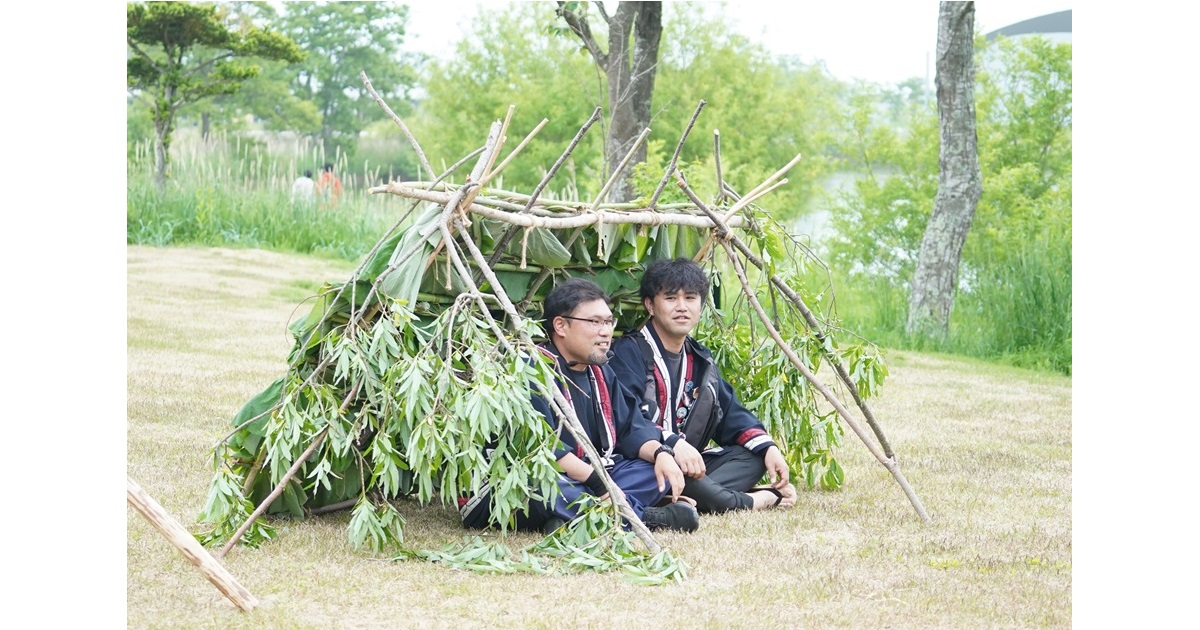 設営後にはコㇿコニクチャ内部に入り防風・遮光感を体験する事もできます。