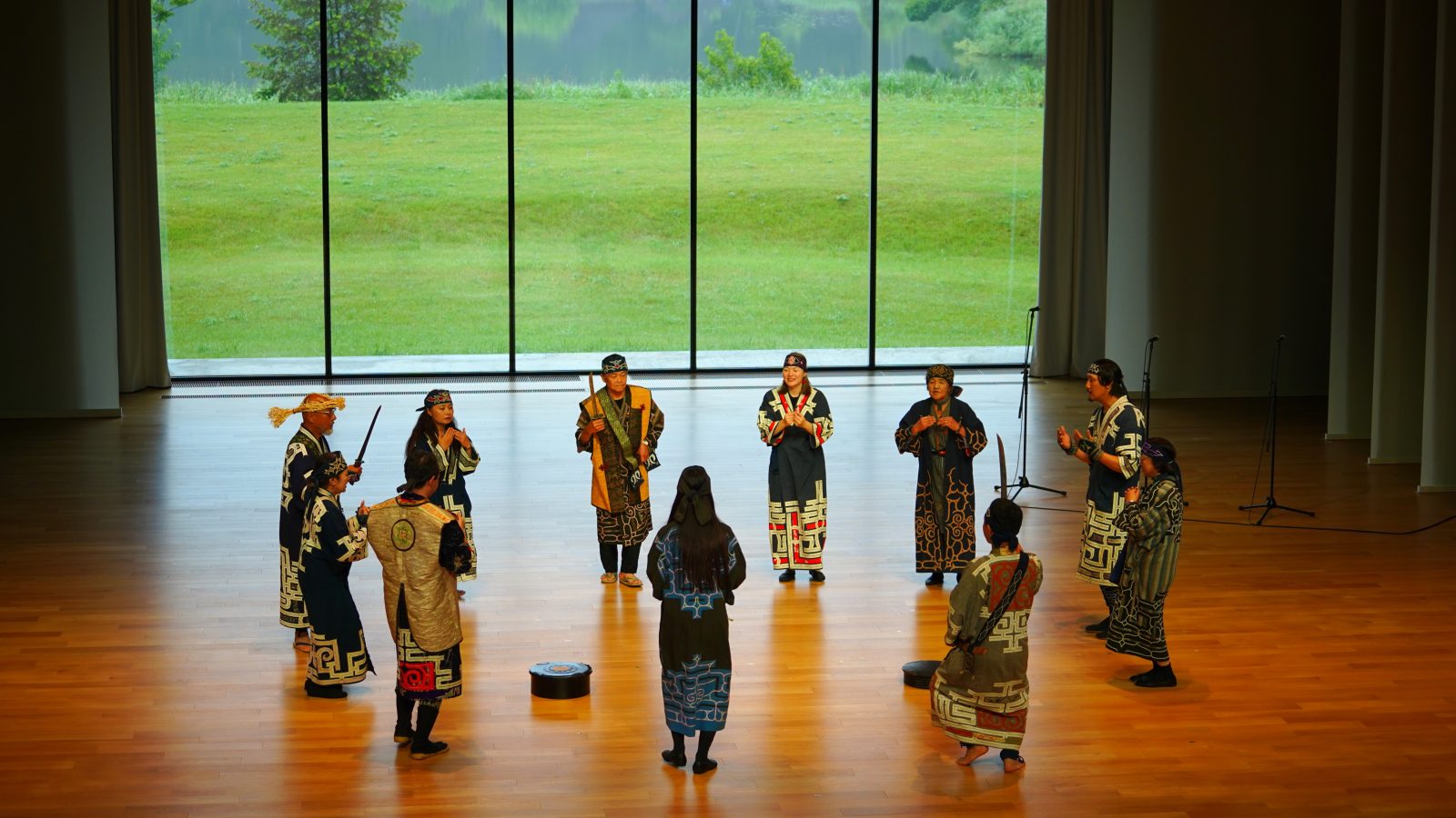 ウポポイでは、アイヌの伝統及びアイヌ文化に関する理解促進を図るため、令和3年度よりアイヌ古式舞踊等を伝承している団体を招請し、園内において各地域で伝承されている舞踊等を披露・発信しています。